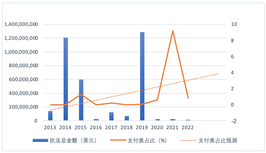 图 1 美国制裁执法趋势及非银行支付类占比预测