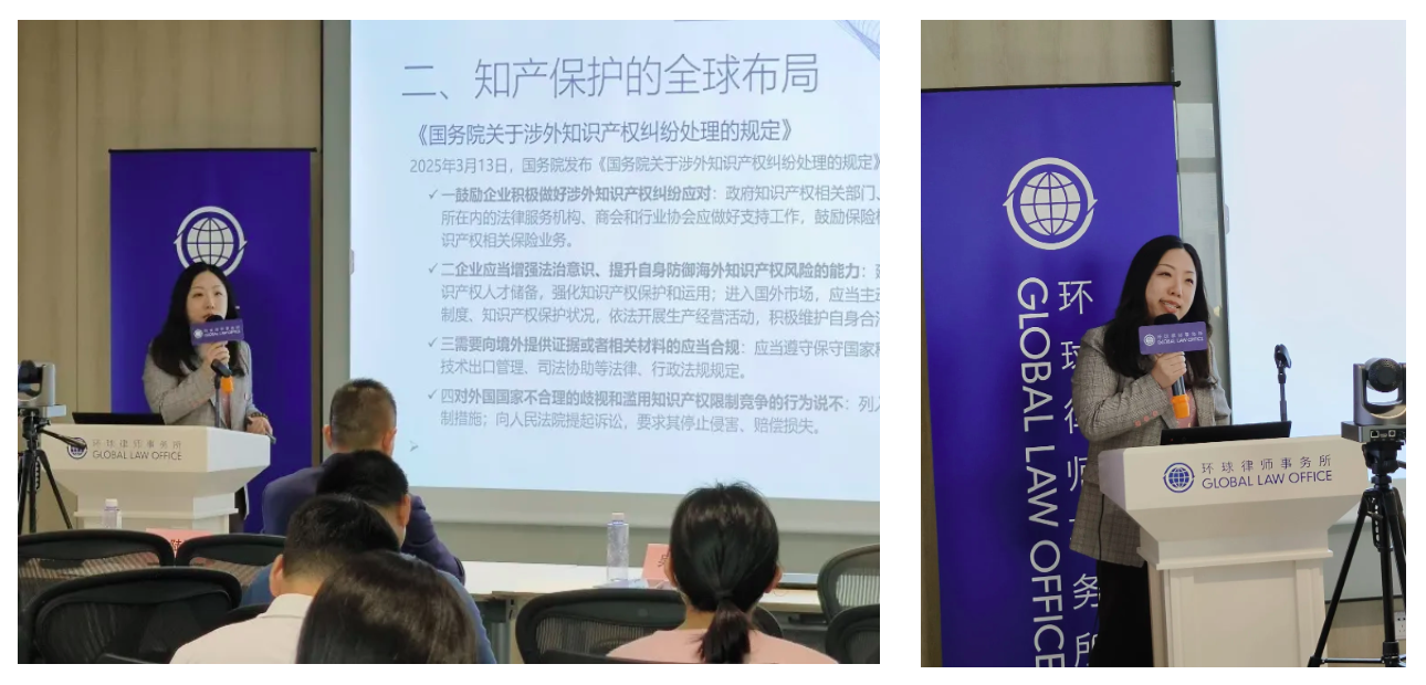 茶歇过后,主讲人吴永恒以“中资企业出海过程中的知识产权合规与典型案例”为主题,从知识产权保护的地域限制与全球布局、合规体系建设与风险防控、诉讼风险与应对策略三大方面对于中企出海可能面临的知识产权相关规范与问题进行了全面的揭示,阐明了知识产权的地域性与全球布局的必要性,提示企业从团队建设、完善认知、全流程防控风险等多个角度考虑内部知识产权合规管理体系的建设。吴永恒还带来了关于商标抢注、商标侵权、商业秘密侵权和跨境电商知识产权纠纷等不同领域的案例分析,生动形象地展示了知识产权争议中在不同地区和领域寻求救济的不同之处,并结合自身深厚的知识基础与经验,为企业提供了细致的参考建议。
