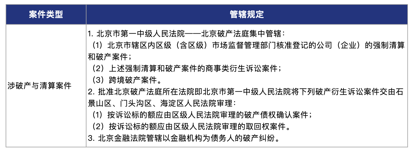 二、北京法院第一审民商事案件专门管辖/集中管辖规定