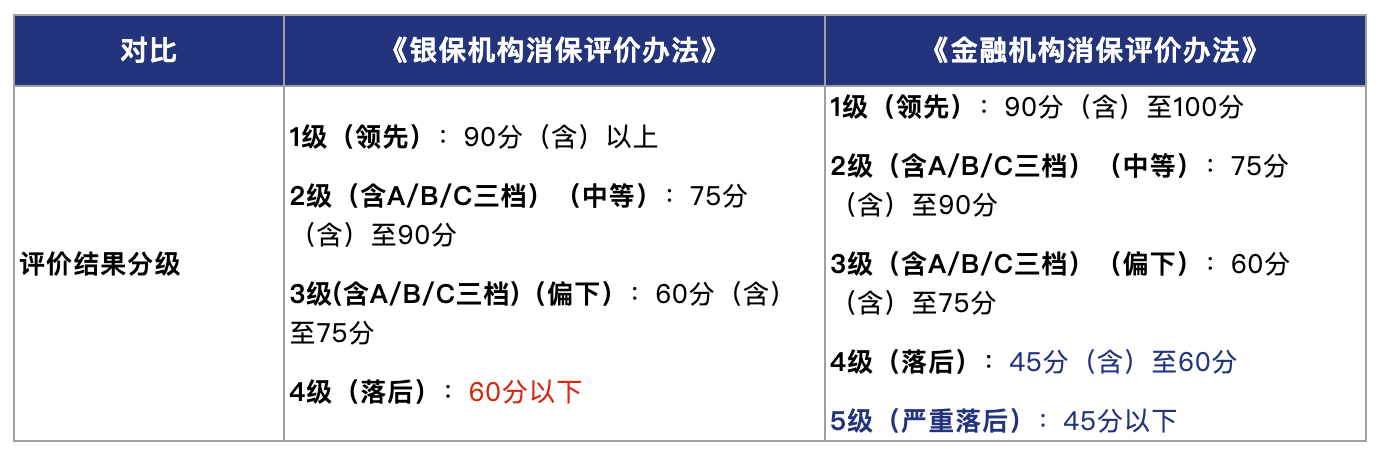 为更准确地反映金融机构消保工作的整体面貌,特别是基层机构的执行情况,并实施监管评价,25版办法调整了总分计算权重,并优化了结果分级。