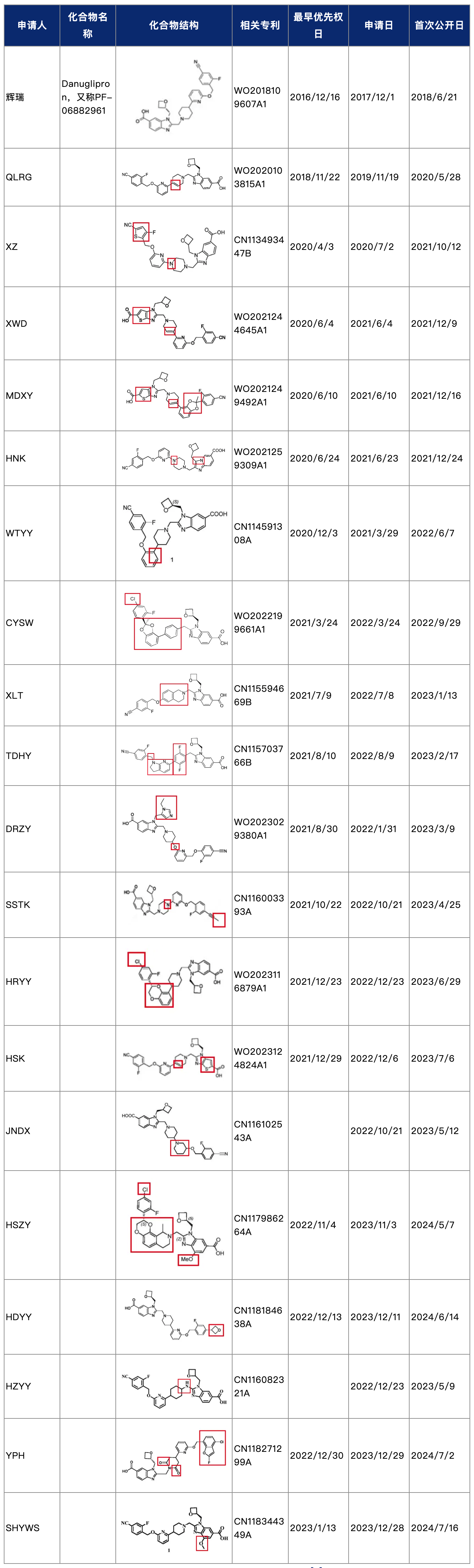 表2:Danuglipron类似结构专利申请示例[3]
