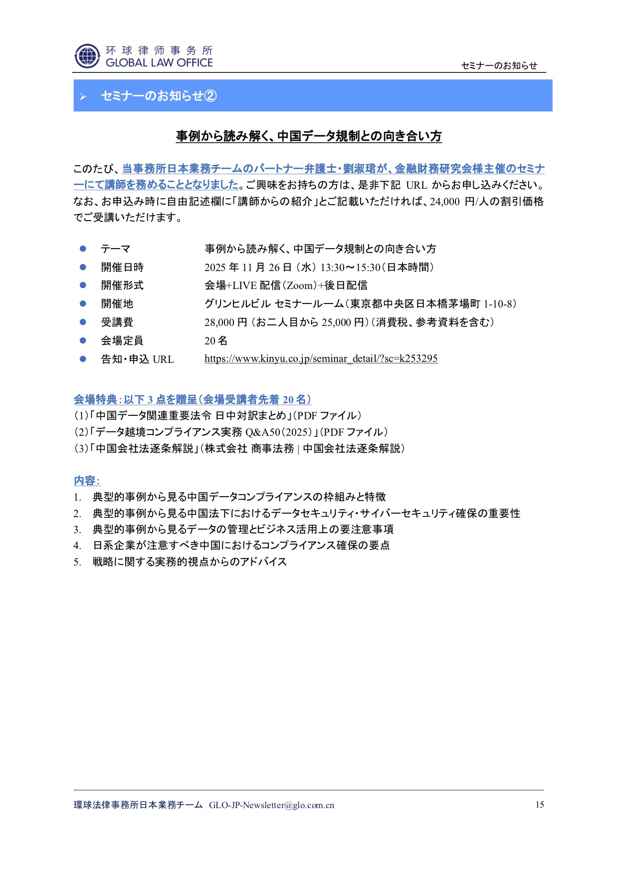 本速報の著作権は当事務所日本業務チームに帰属します。日本語版「環球中国法速報」のE-mail配信を希望される方は、「点此订阅」ボタンをクリックし、申込フォームに必要事項をご記入の上、お申し込みください。