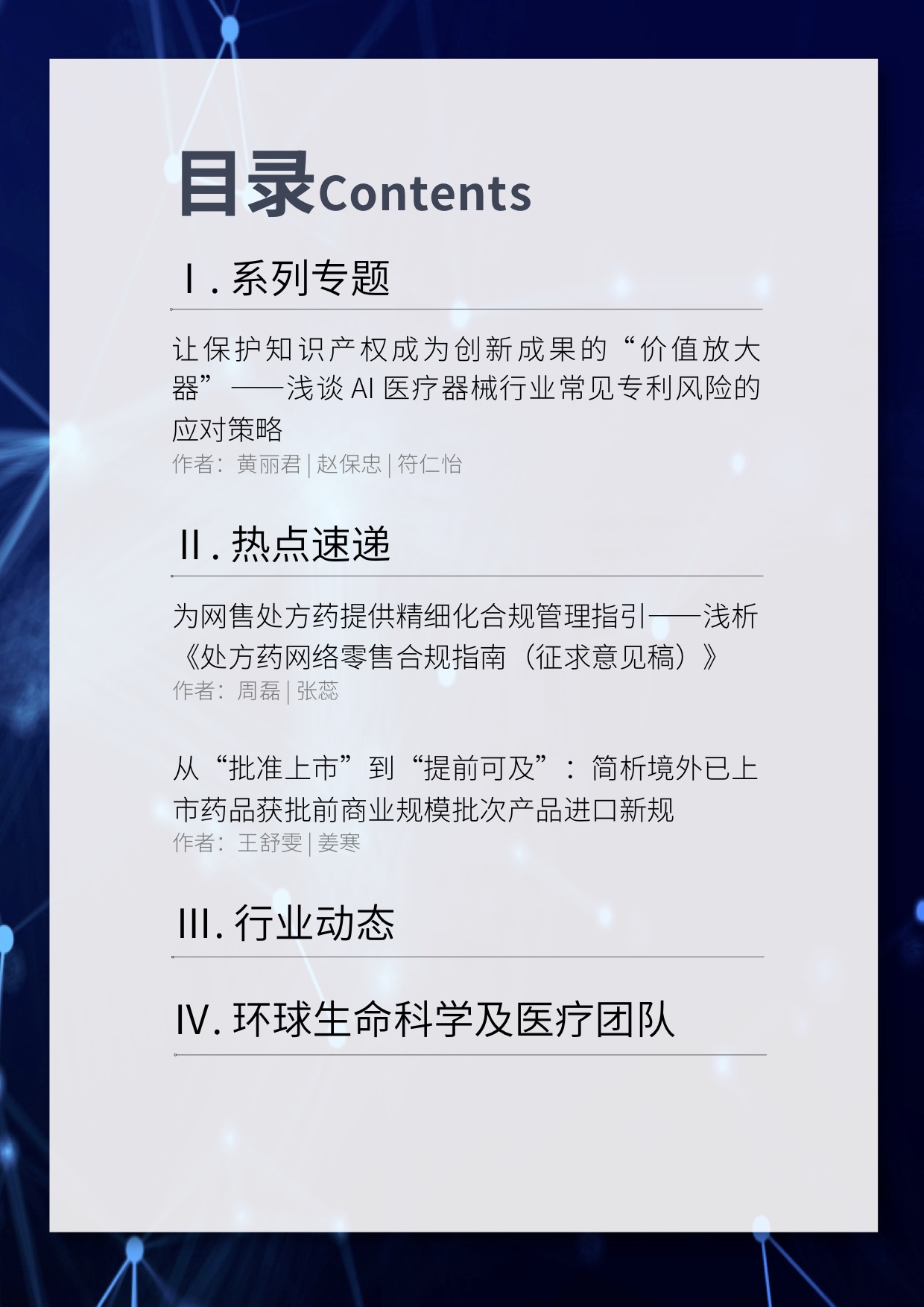 环球生命科学及医疗团队作为该领域的专业法律团队,时刻关注着行业内的发展动态,我们结合对该行业及相关法律法规深刻的专业理解,以及对国内法律法规和政策的新变化的解读,现推出《环球生命科学及医疗法律专递》2025年第十期(总第一百零七期),并将定期更新。