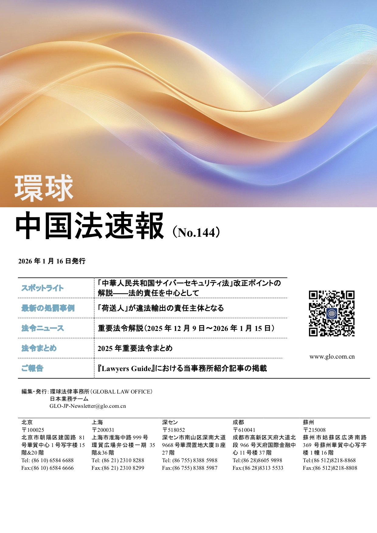 本环球中国法速报由本所日本业务团队编辑出版。请点击文末“点此订阅”进行订阅。