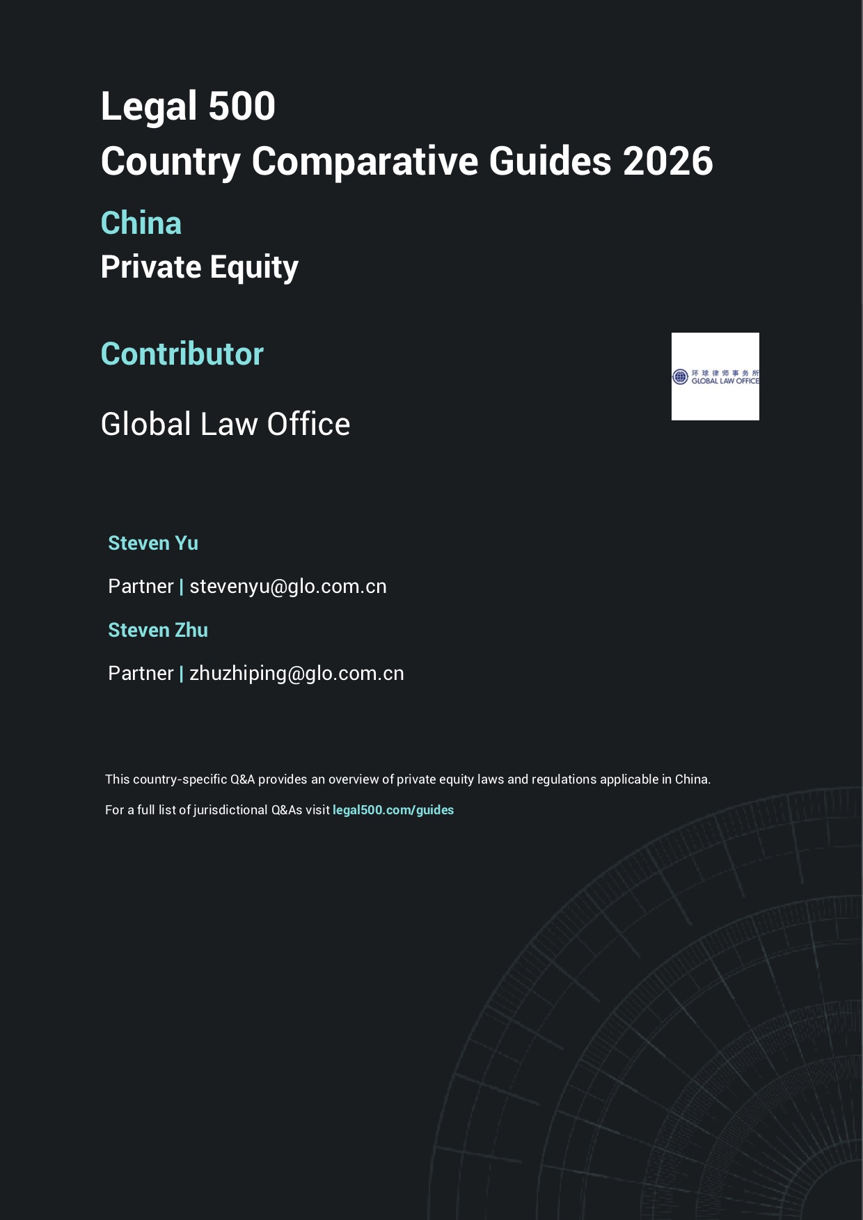 Global Law Office was invited for the fifth year by The Legal 500 and In-House Lawyer to contribute exclusively to the China chapter of the Country Comparative Guide 2026 - Private Equity. Each jurisdiction’s chapter is meticulously written by authors from top-ranked firms in the relevant practice area, as recognized by The Legal 500.