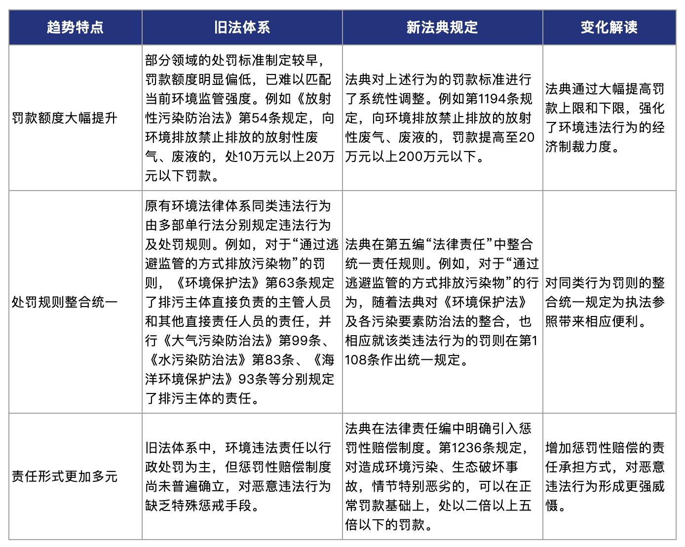 三、法典下的生态环境违法处罚规定