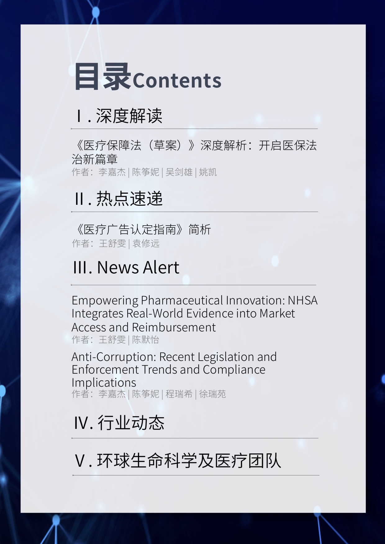 环球生命科学及医疗团队作为该领域的专业法律团队,时刻关注着行业内的发展动态,我们结合对该行业及相关法律法规深刻的专业理解,以及对国内法律法规和政策的新变化的解读,现推出《环球生命科学及医疗法律专递》2025年第九期(总第一百零六期),并将定期更新。