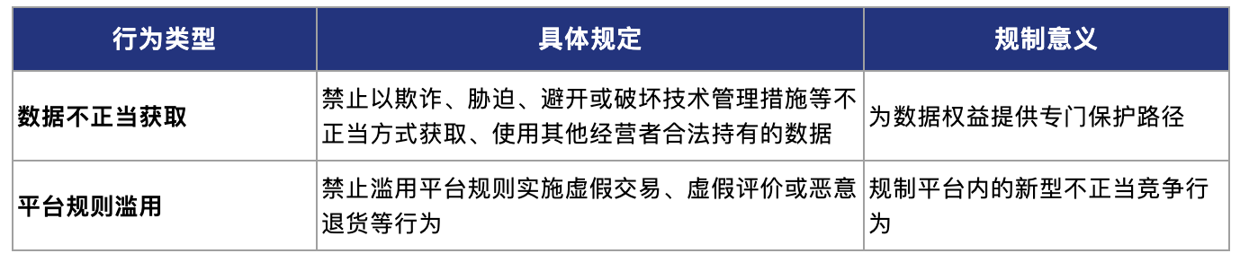 新法第十三条对网络不正当竞争行为的规定进行了重要革新,该条将规制范围从“技术手段”扩展至“数据和算法、技术、平台规则等”,并新增了两类重要禁止行为: