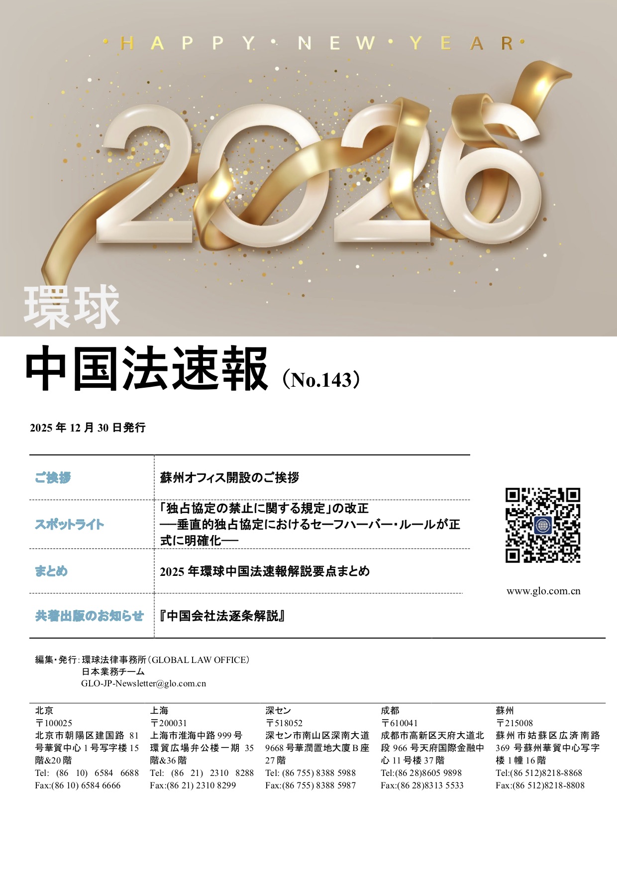 本环球中国法速报由本所日本业务团队编辑出版。请点击文末“点此订阅”进行订阅。